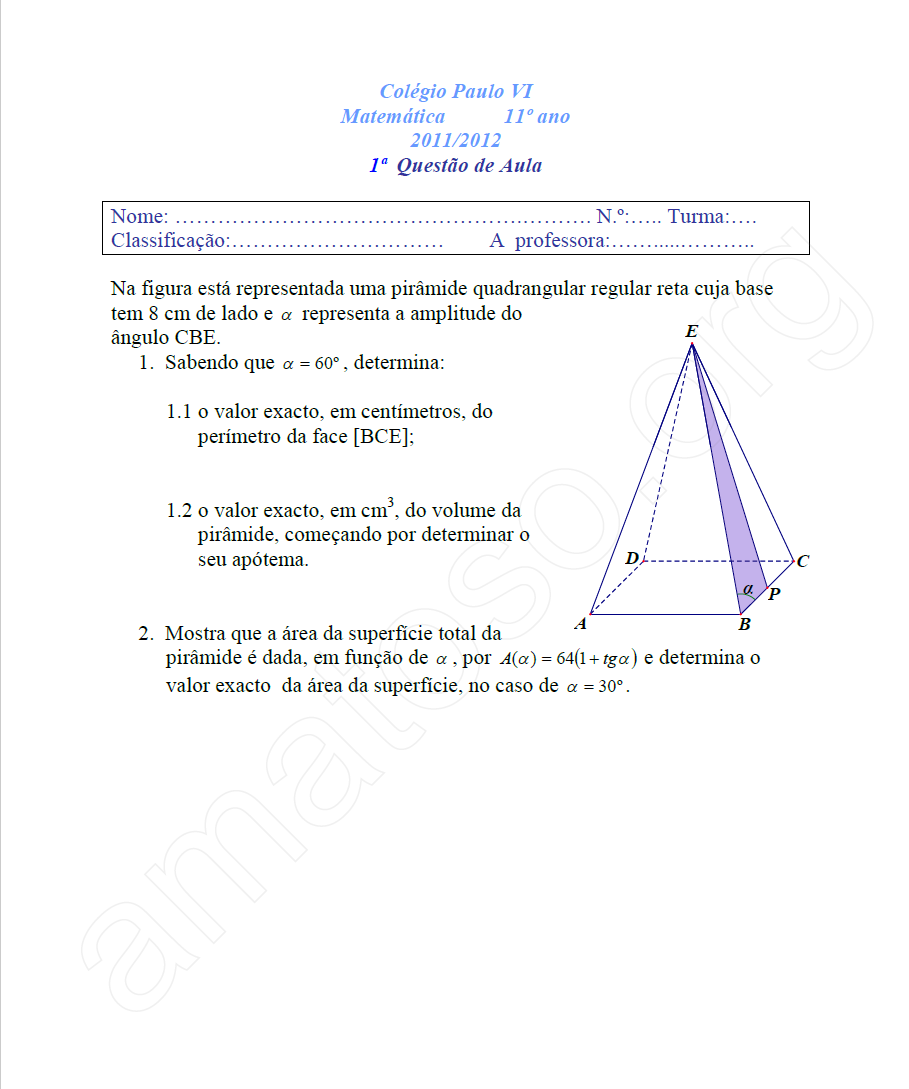 Ficha de avaliação de 12ºano Ano letivo 2011-2012